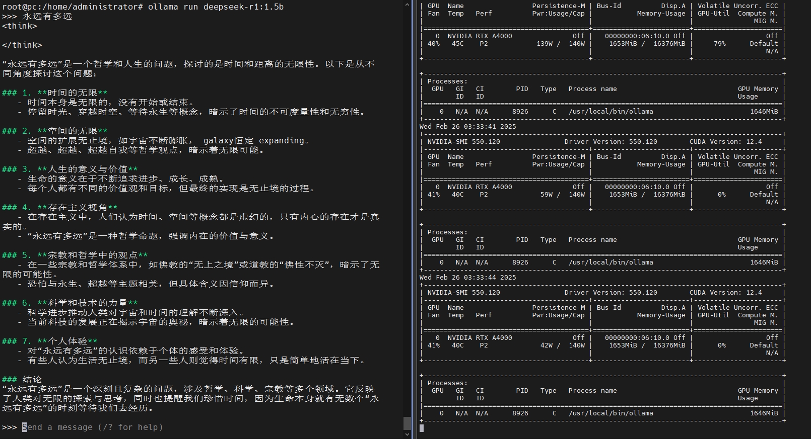 ctrl + d 退出运行,ollama run deepseek-r1:1.5b 再次运行