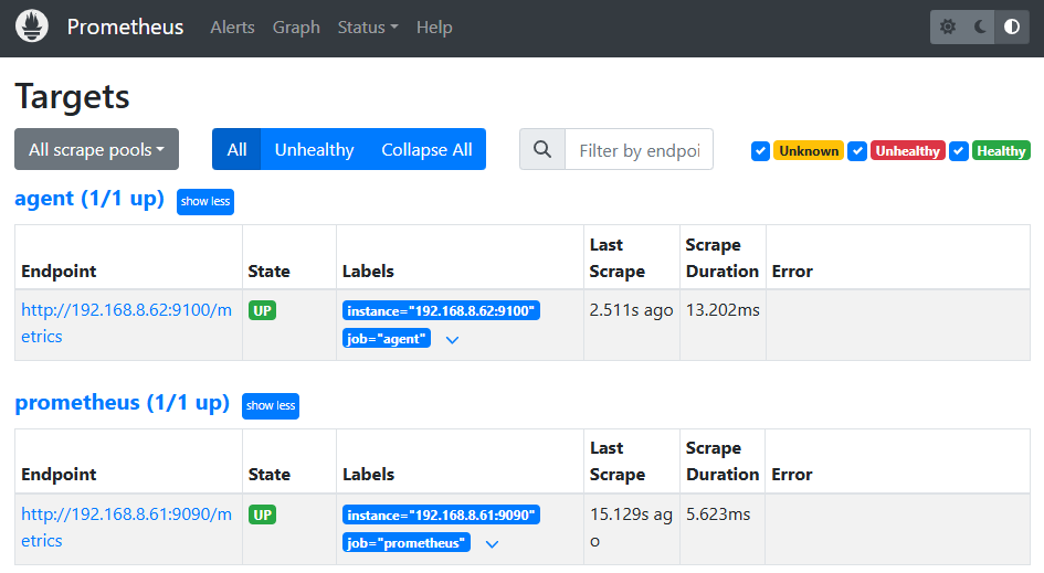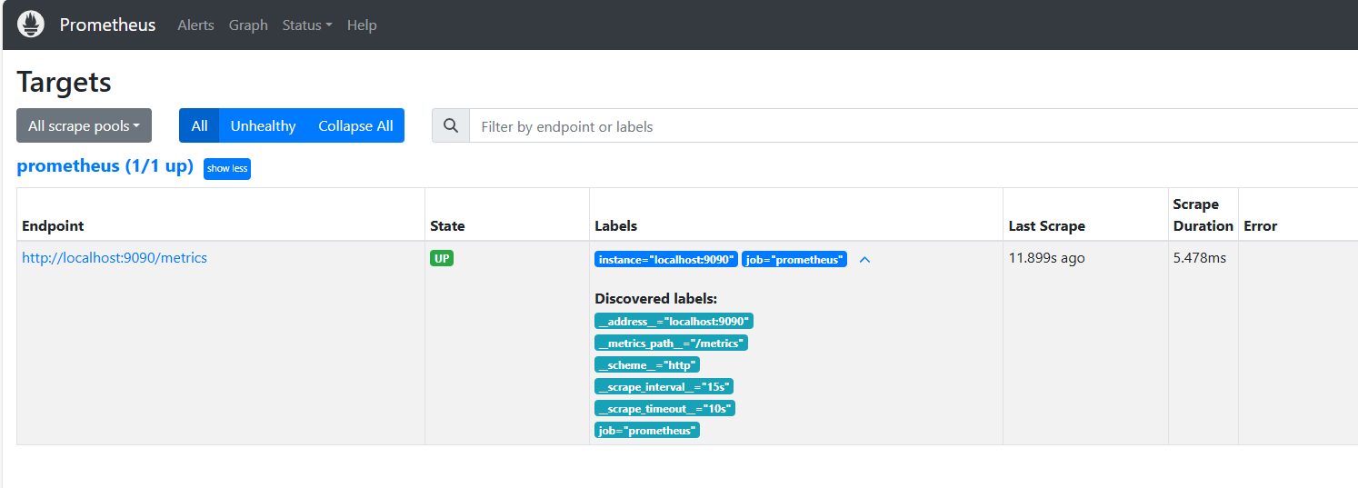 选择status的targets,查看Prometheus的运行状态