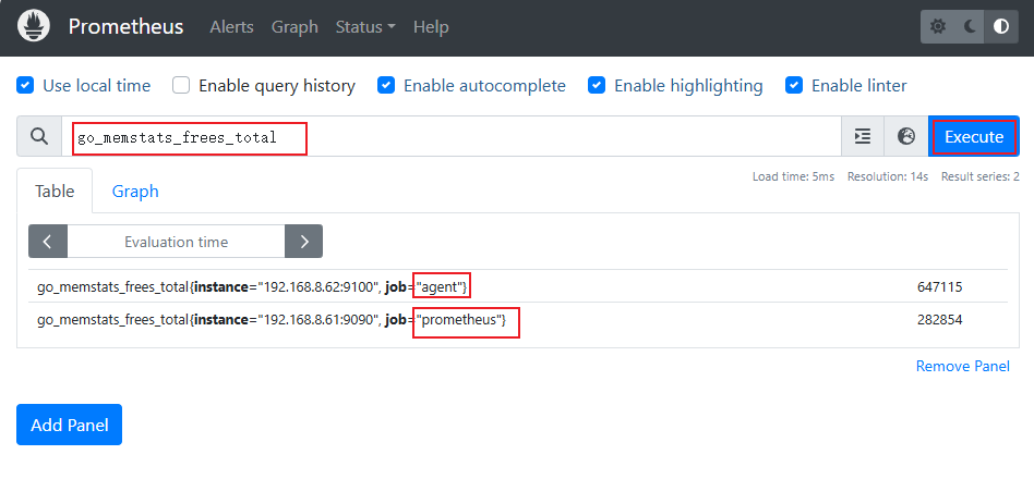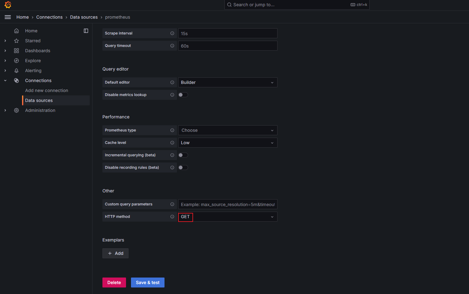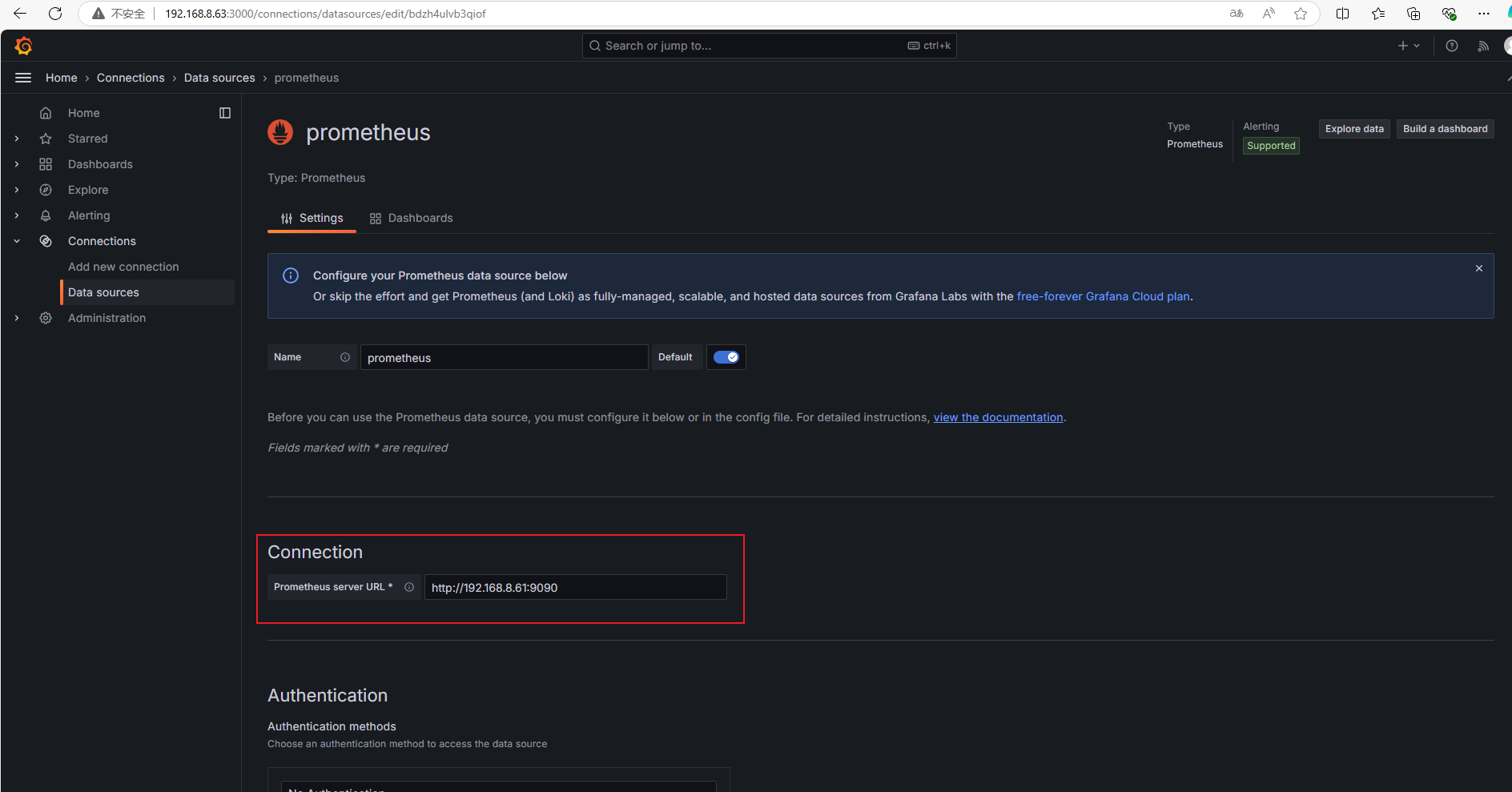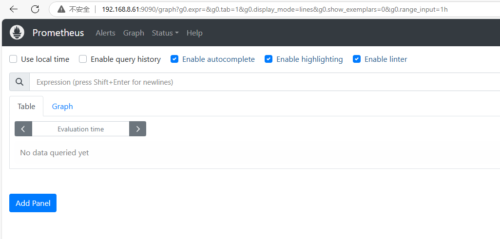 添加Prometheus的ip和端口,获取数据的方式为get