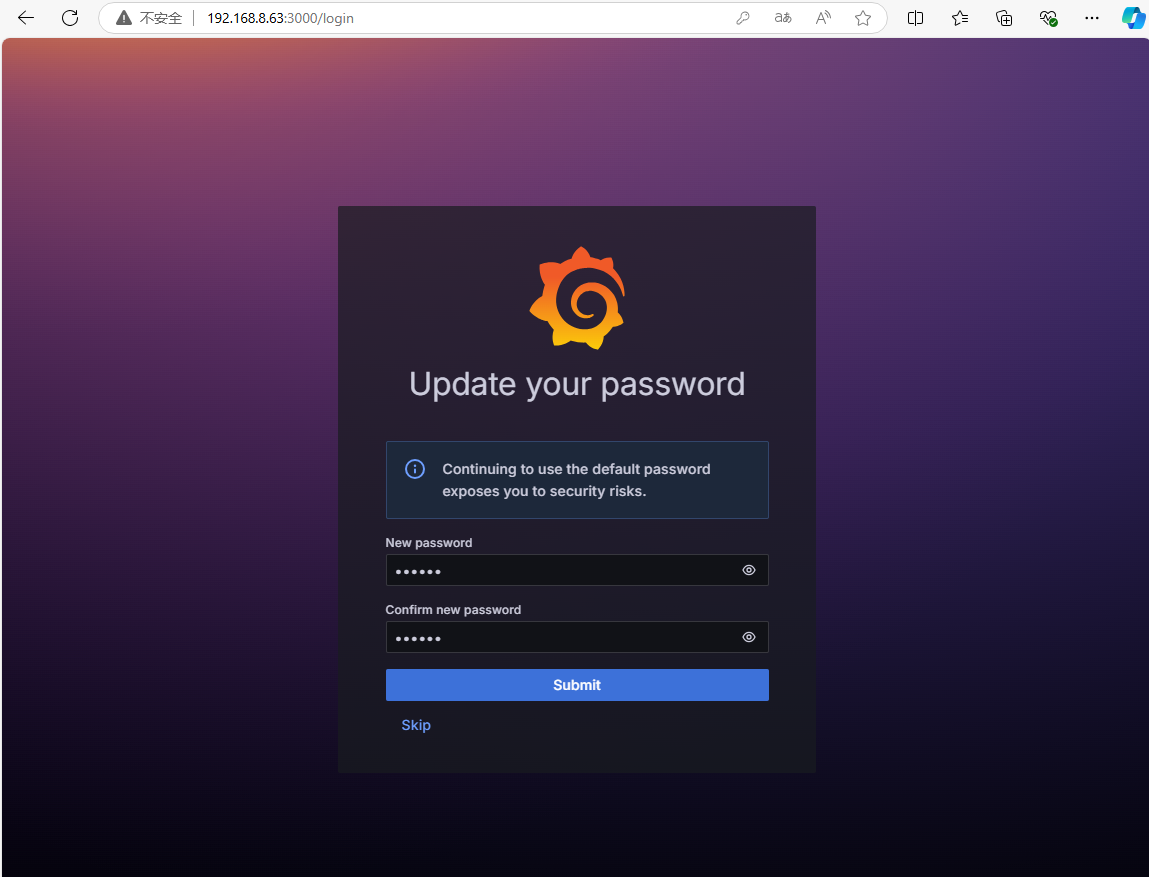 浏览器ip:3000,默认账号密码均为admin