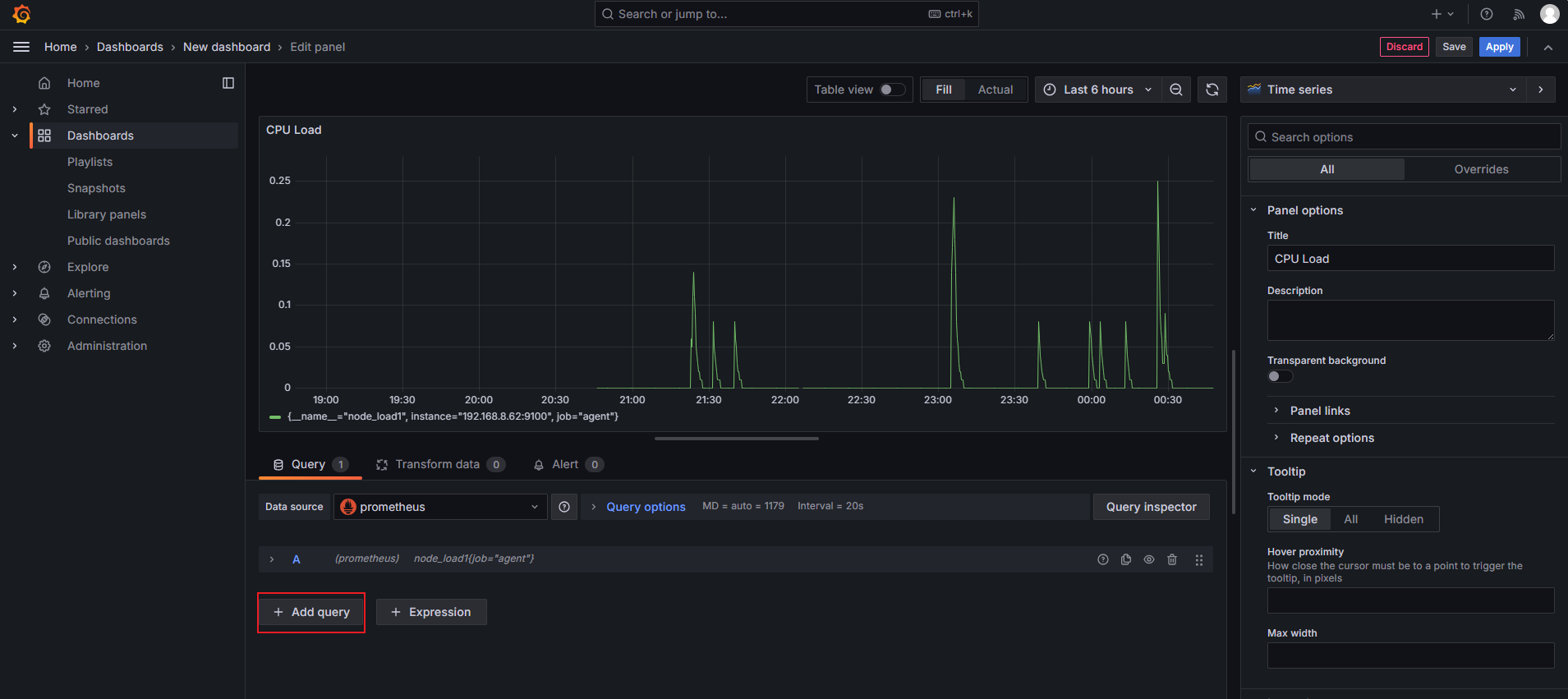 添加一个node_load1,监控cpu1分钟的平均负载