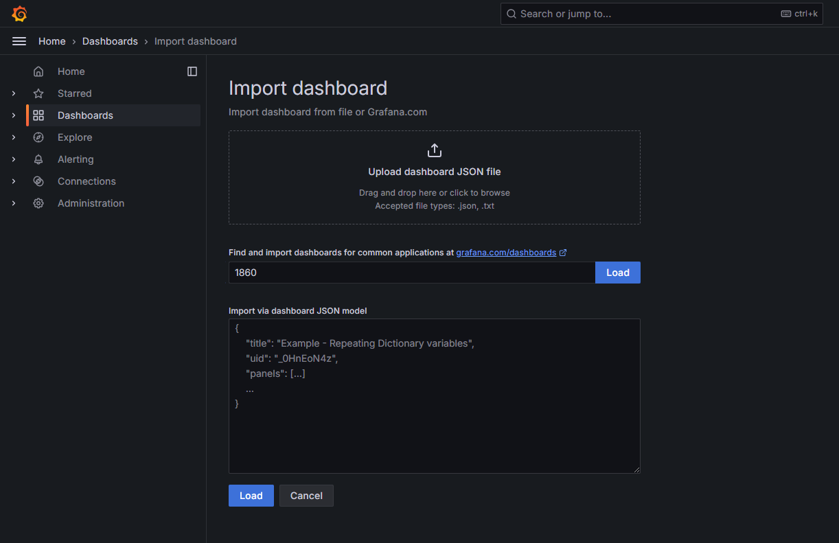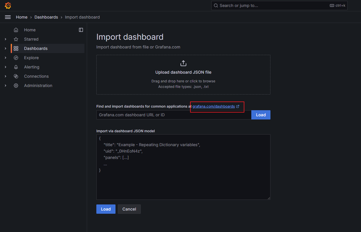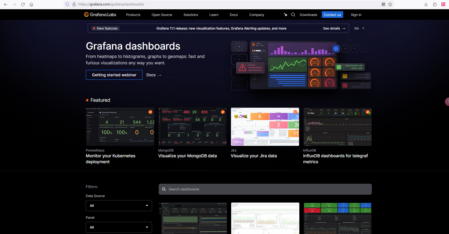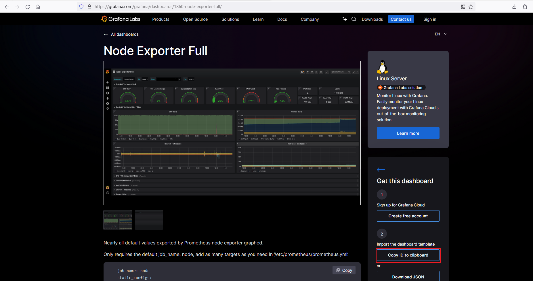 打开grafana官网提供模板链接,添加一个模板id