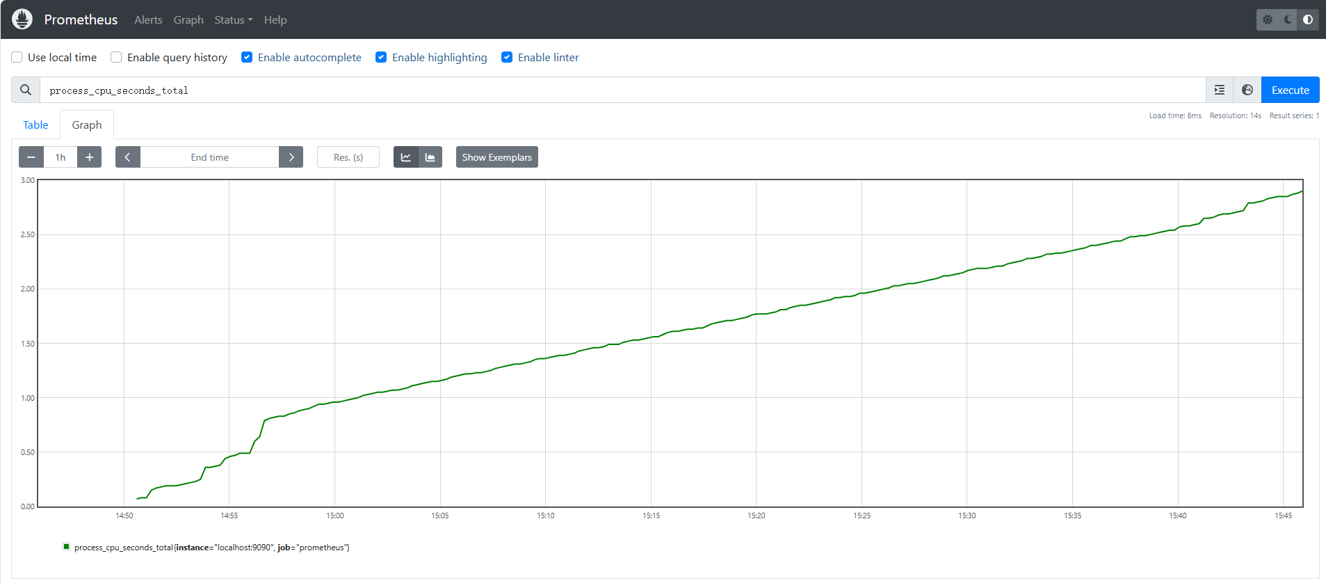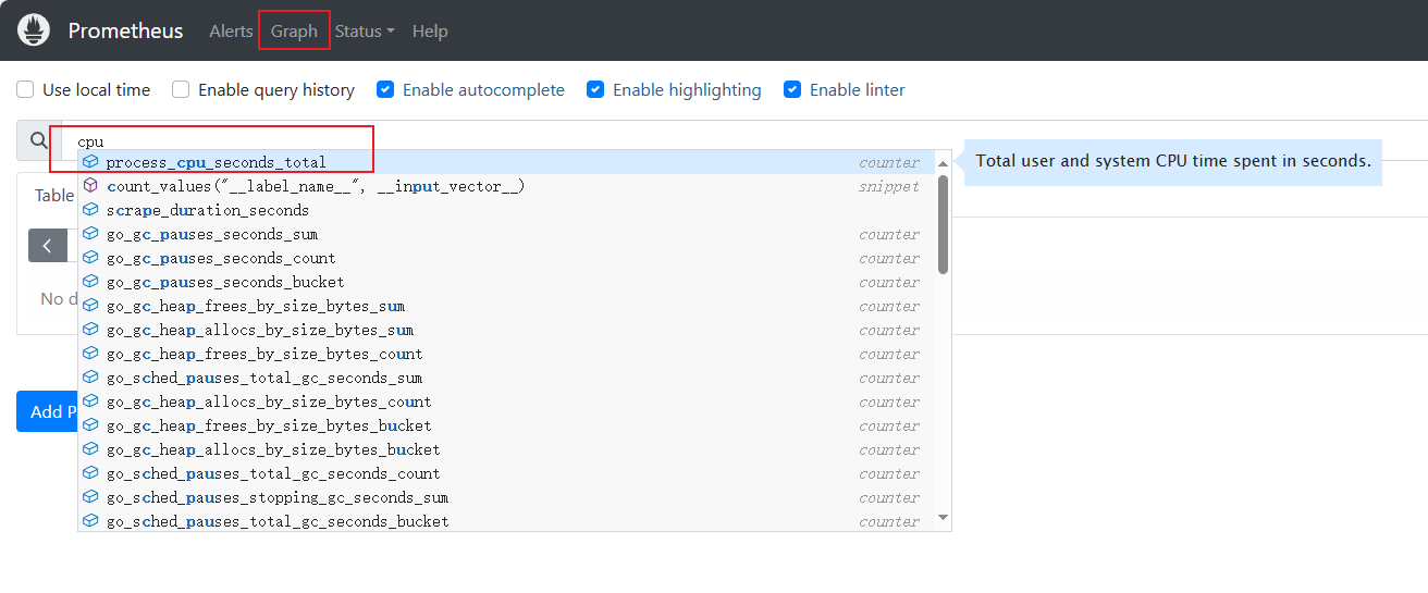 添加一个监控cpu参数:process_cpu_seconds_total