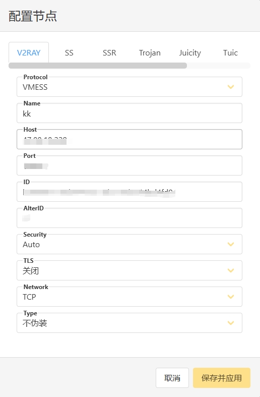 添加vmess节点信息