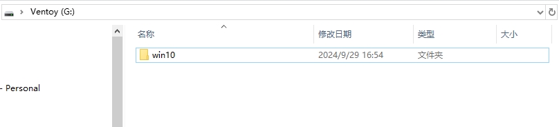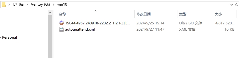 在ventoy根目录下载创建win目录,win10目录用来存放win10镜像和应答文件
